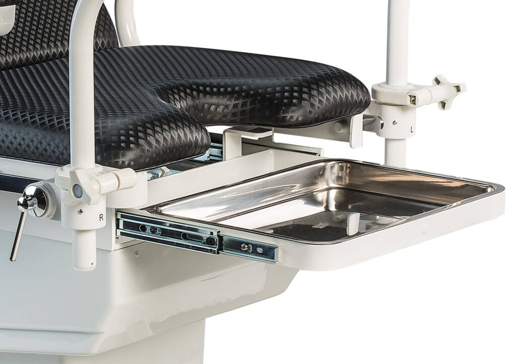 - Extensión movible para apoyo de las piernas con bandeja de acero inoxidable acoplada