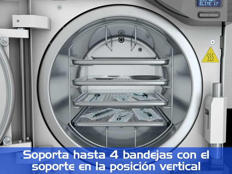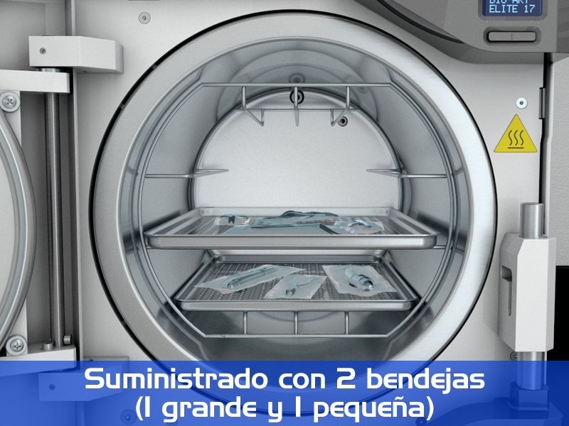 Suminstrada con: 2 bandejas (sin embargo posee un soporte que permite la utilización de hasta 4 bandejas simultáneas) y soporte para embalaje
